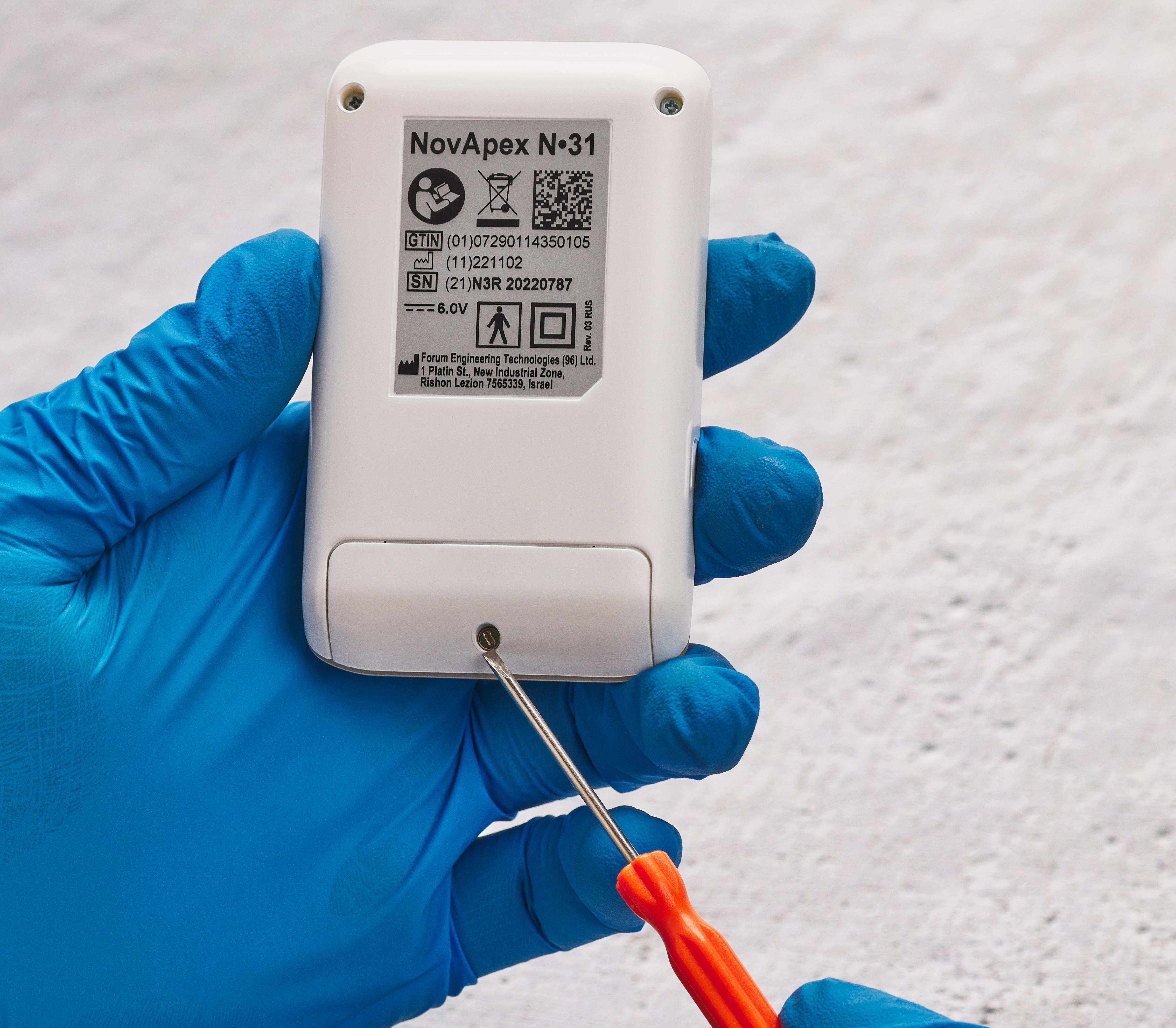 - NovApex выключается автоматически через 2 минуты, если им не пользуются.